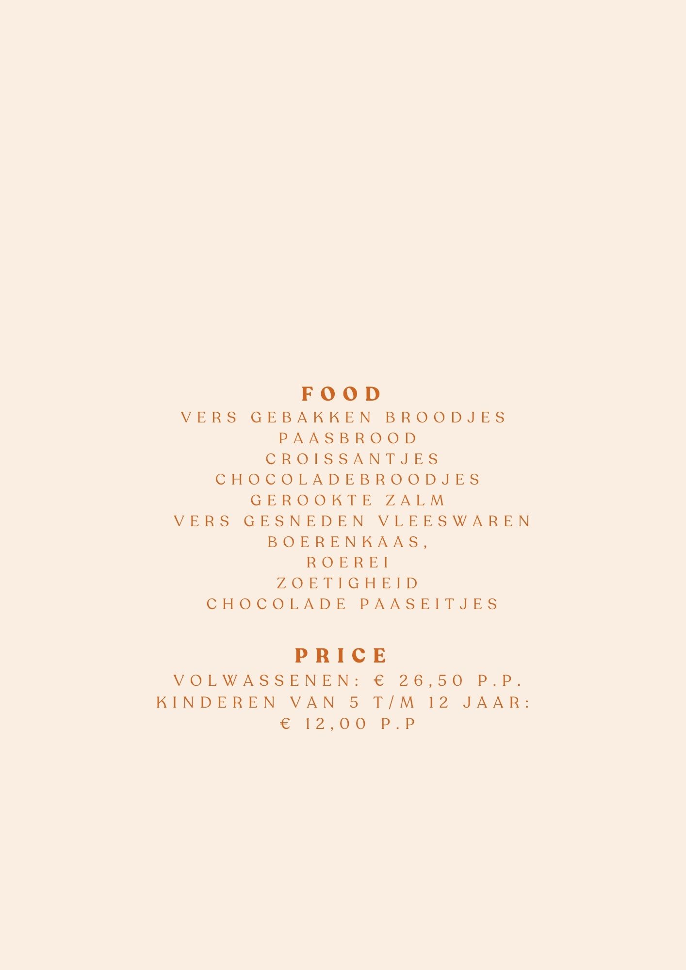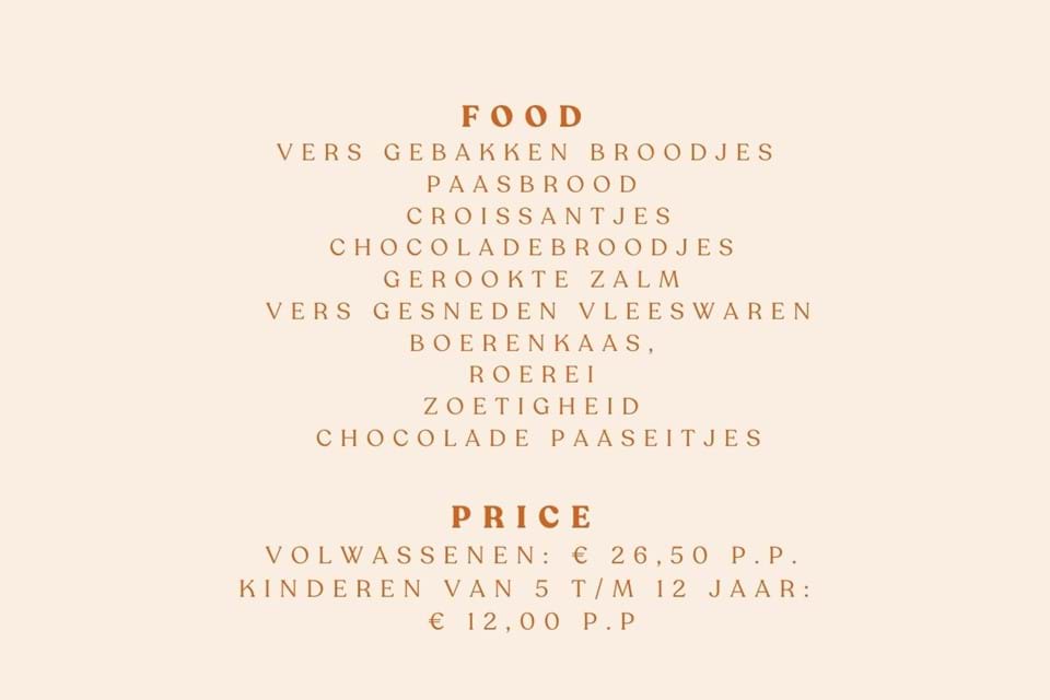 Alle dranken kunt op basis van nacalculatie bestellen. Het paasontbijt € 26,50 per persoon | kinderen 5 t/m 12 jaar € 12,00